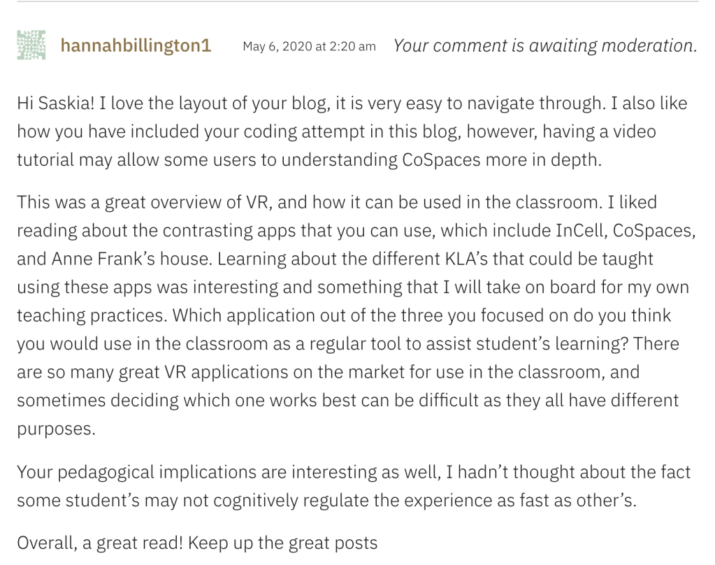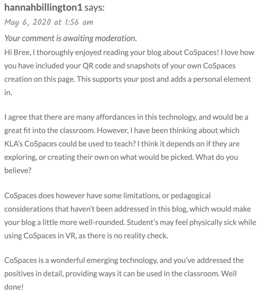 I agree that CoSpaces is a great application that allows students to gain a deeper understanding of the topic. Thank…