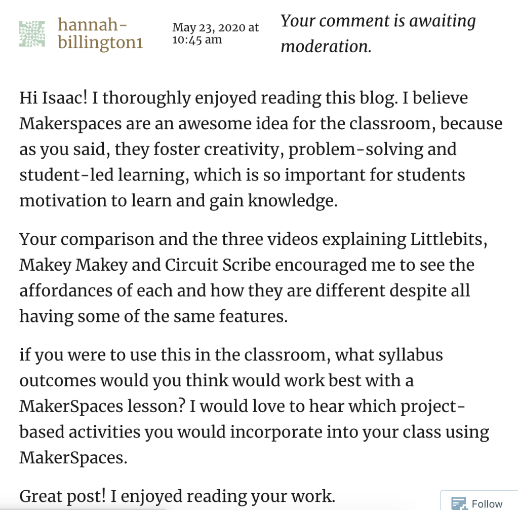 Hi Hannah! Those are some great examples of Makey Makey you have found. I was wondering how you would incorporate…